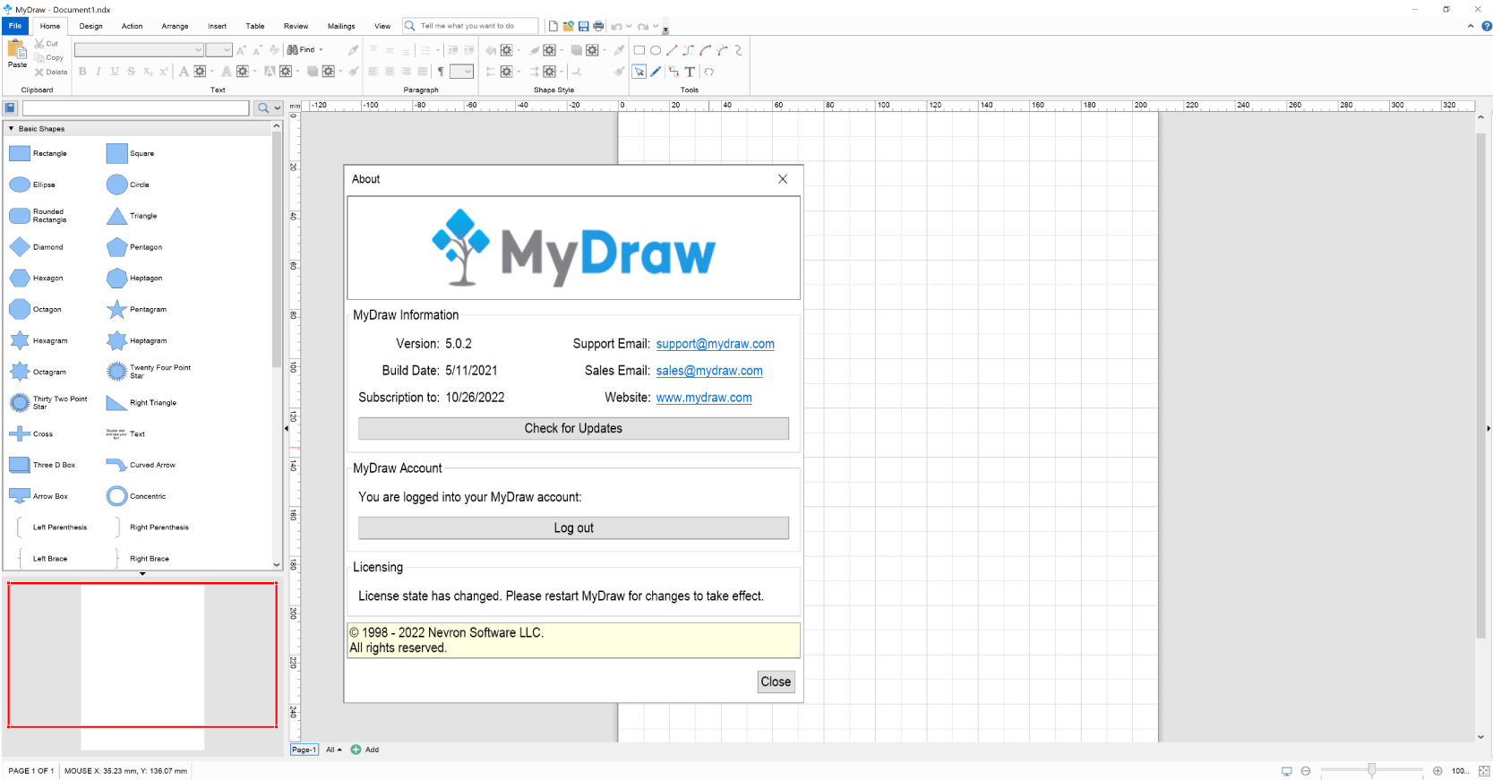 *After version 4.0.0 MyDraw allows you to deactivate your license and activate it on a different machine using any of both supported operation systems (Windows and macOS).