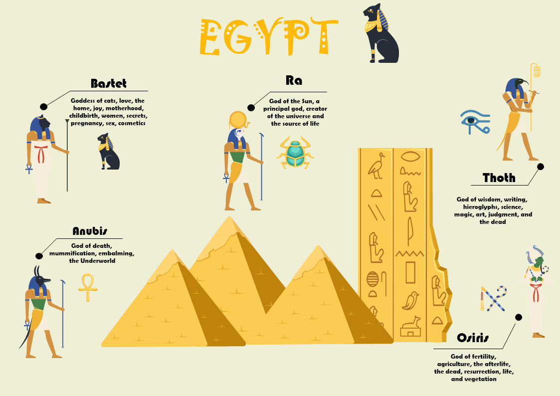 This is a free Egypt Mythology infographic template that middle schools can use for presentation in History classes, high schools can print for theme parties or students can prepare for a midterm exam. The template is a 100% customizable and you can edit every aspect of it with a few simple clicks in MyDraw.